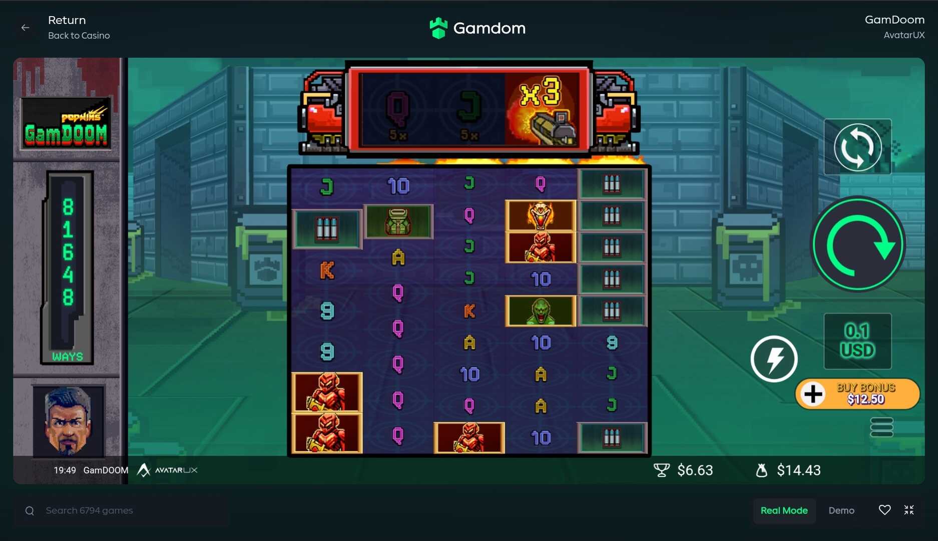 Feedback: Gamdom's exclusive slot called GamDOOM is such a crazy work 🙂 I am so old that I tried to install DOOM 2 from a floppy disk. The third floppy dropped me out with a corrupted file. Anyway this game brings back some good memories. The 8 bit music and pixel design is authentic however animations are too smooth and nice. It's a great AvatarUX popwins as usual but 50k max win holds some serious potential.