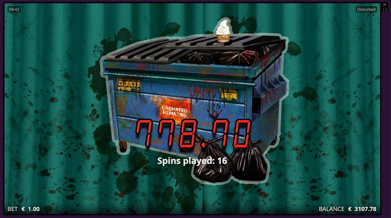 I really enjoy new nolimit slot graphics are very nice and sound is awesome,spun bonus in first spin paid 91x so I was happy enough but after that I find hard to get another one, Disturbed give me a mix feeling of Mantal and Serial .With 50xk potential this game win is insane my score 8.5/10