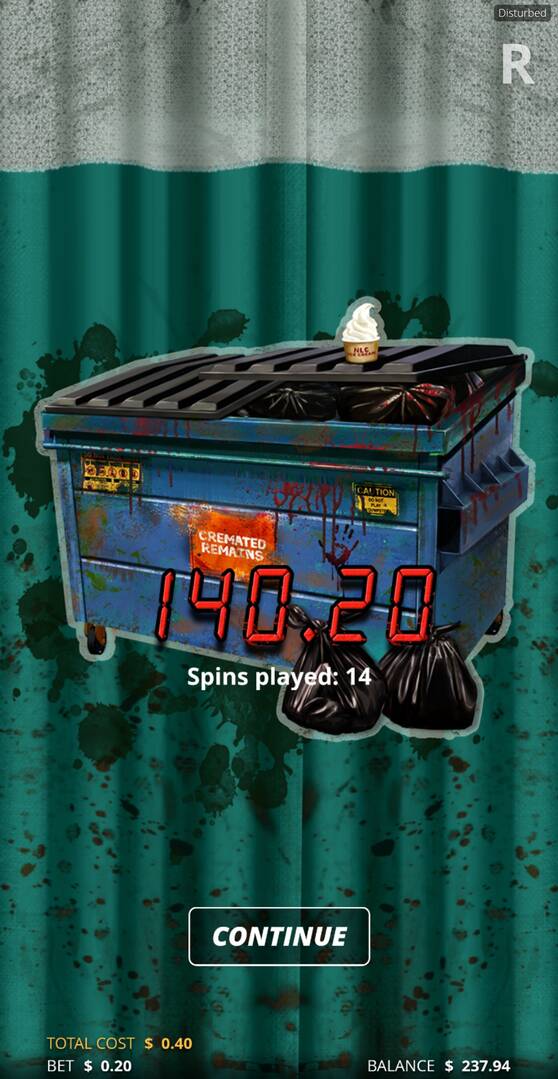 I tried the game today at Boom casino. Base game gave me a few 10x-20x wins and although the theme is dark, in this case it's not as disturbing (even though the name says so!) as some other Nolimit City games. I also had a free spins round but that didn't pay even 10x, which makes me think that this is one of their games where big wins can be pretty much achieved only with super bonus feature. Two things I did like about this game- color scheme and music. Usually I don't like slot sounds but here it seemed fitting.