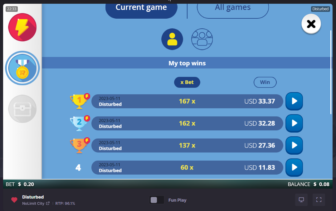 Hi guys, I was lucky to hit a nice win at Tsars Casino on May 9th. Had about 200 eur in my balance. First I did about 300 spins with 0,20, but then became impatient and wanted to give the pre-op spins a try 🙈 made 8 buy-in's and on the 9th I was blessed with this big win, still 0.20 cent stake 😯 as for all Nolimit slots I'm always impressed by the graphics, sounds and mathmodels (still haven't managed to figure out how they work like in Mental or Folsom 🤷♂️😂)and love the fact that despite the extreme volatily, NC is the provider I can trust that the max win potential is real and achievable if you're on the lucky side. 😎 Impatient to see what they'll bring up in the future as well, Disturbed will be part of my favs now next to True Grit Redemption and Evil Goblins 🤙😄 great work guys!