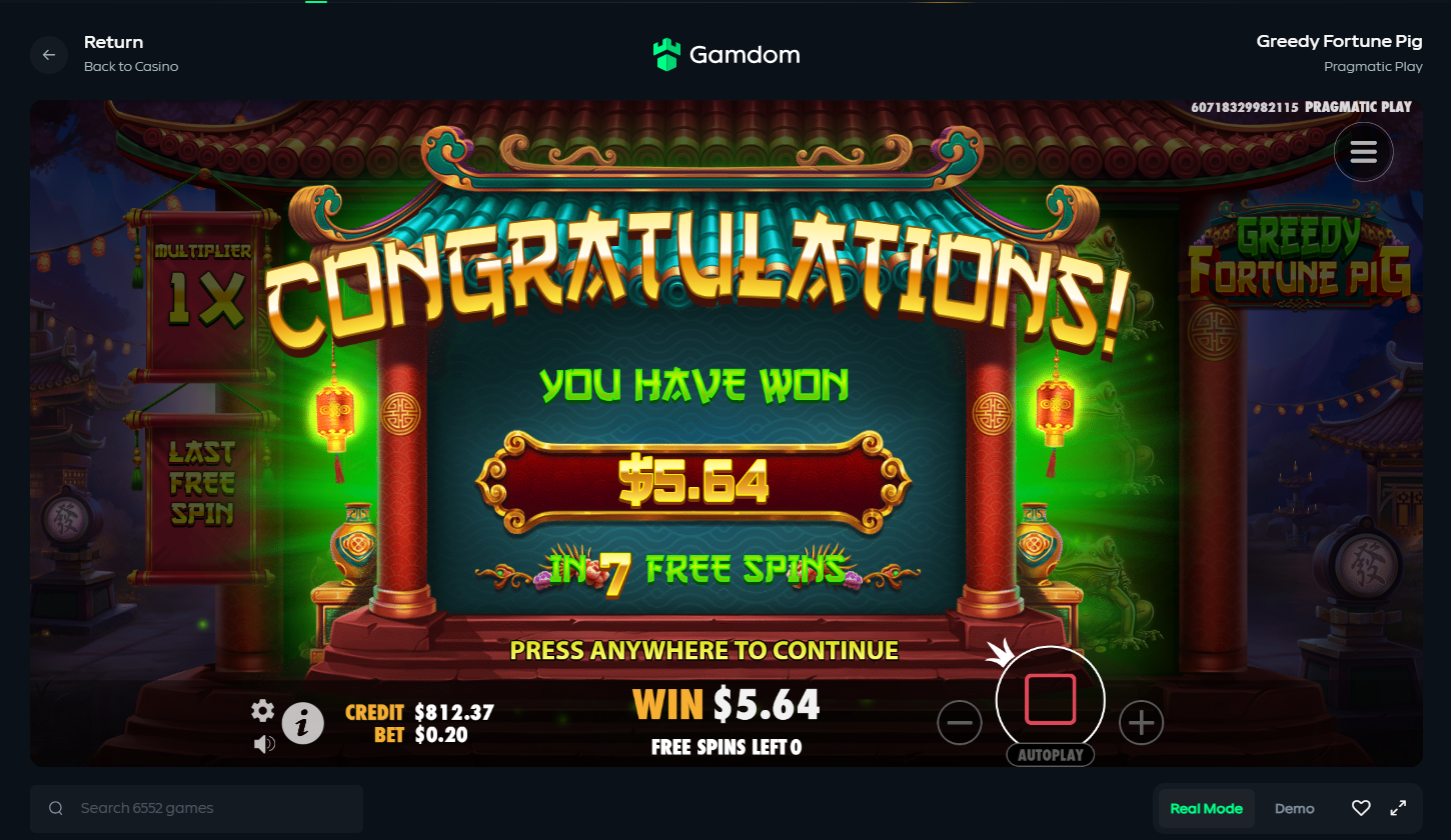 - Feedback: I think the feature with the wandering wild and the fact that it collects the gold bags is great. It always smiles so sweetly when it wins. It's especially great when the pig with a multiplier appears, like in my replay. 😀