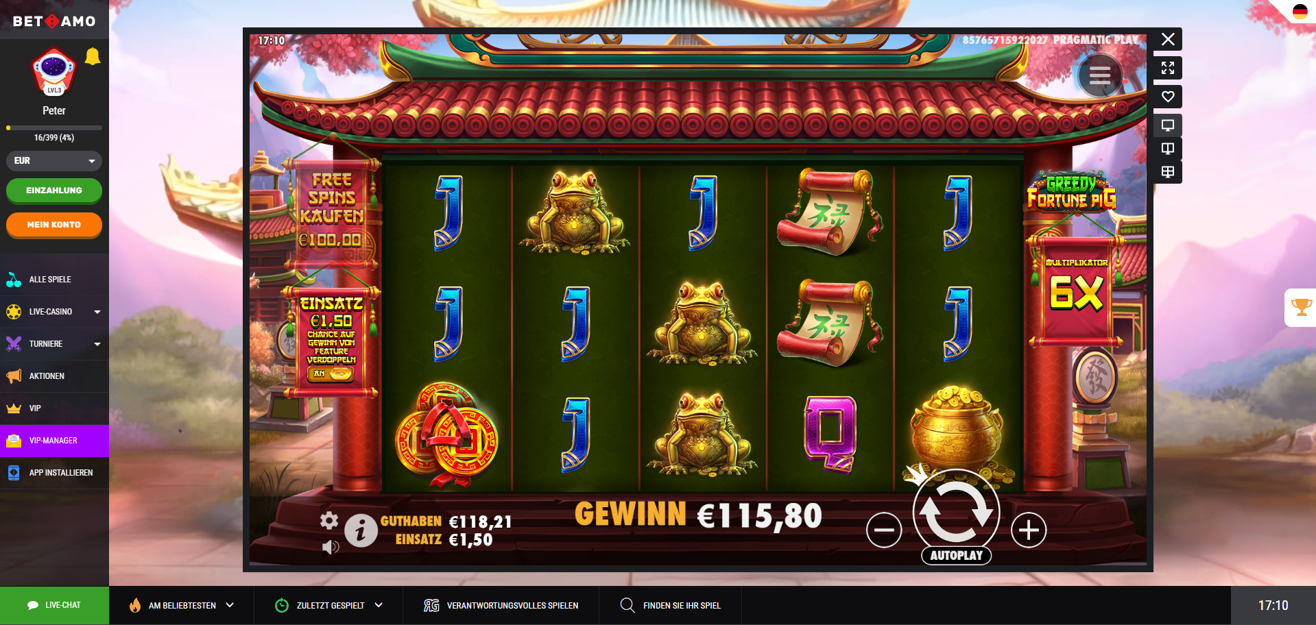 - Feedback: Even with the Bonus bet the Game feels hard to trigger. I tried it and i am not excited to be honest. Would be nice if it had some more features in it as this game isnt anything revolutionary. With the Extra Bet it doesnt feel at all that you get double the Bonusses. Didnt saw the Multiplier Pig at all. Not a game for me sadly. Rating: 4/10