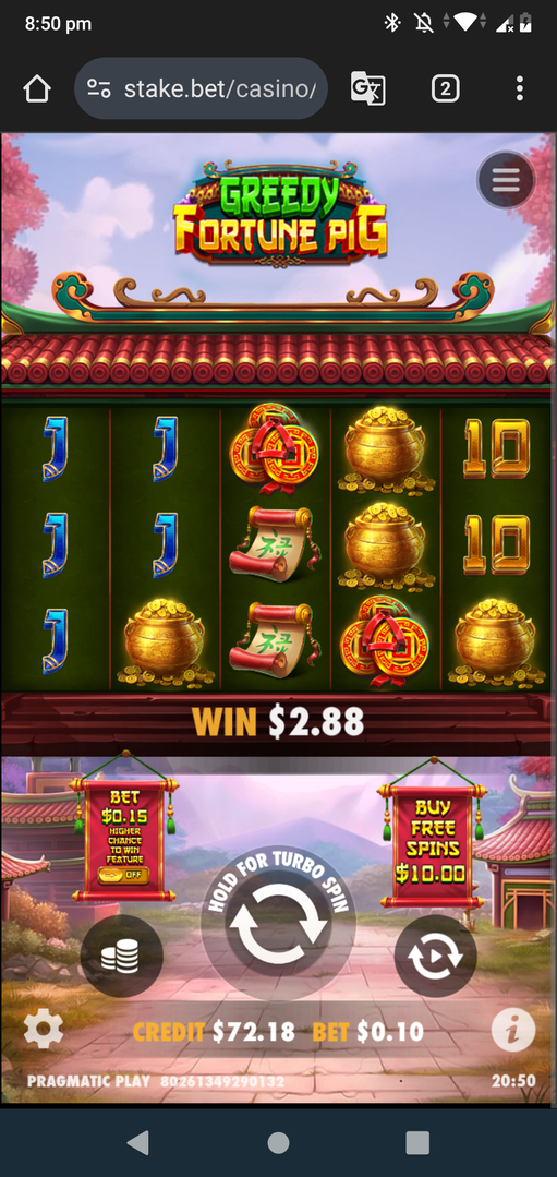 - Feedback:When I first played this game I thought it was going to be a low volatile slot but a good few 100 spins later I was definitely wrong, not even a single bonus tease and struggled to get a win over 20x most were .8x .Asian theme fits the game well and I like the walking wild feature which gives you a few chances for wins.I don't think I will play it again as it was really rough on my balance and busted out on a good few sessions on it