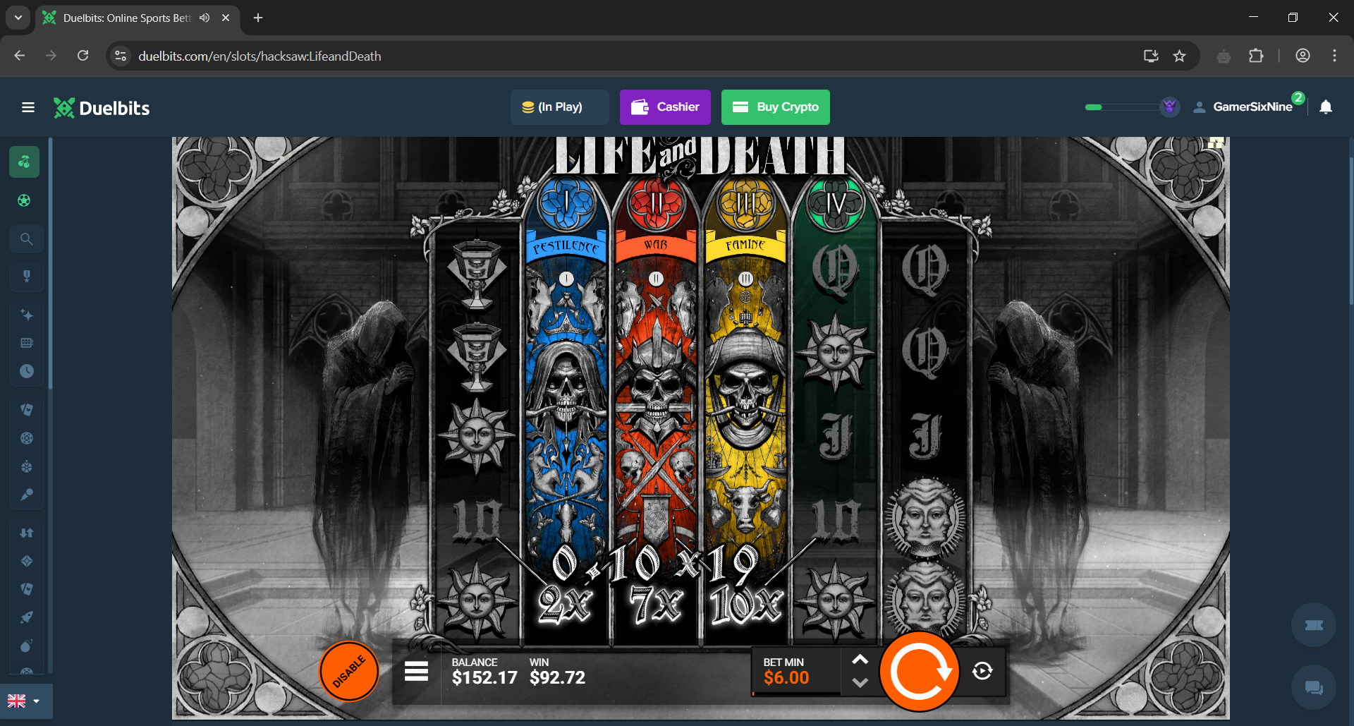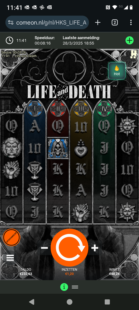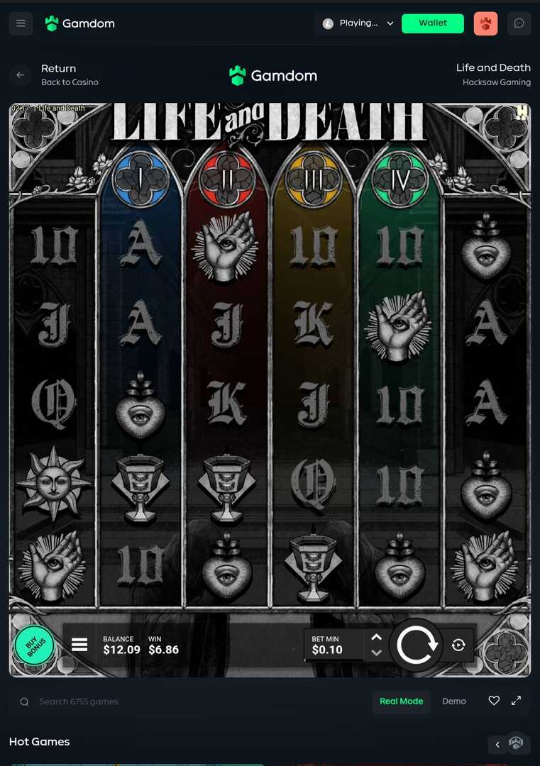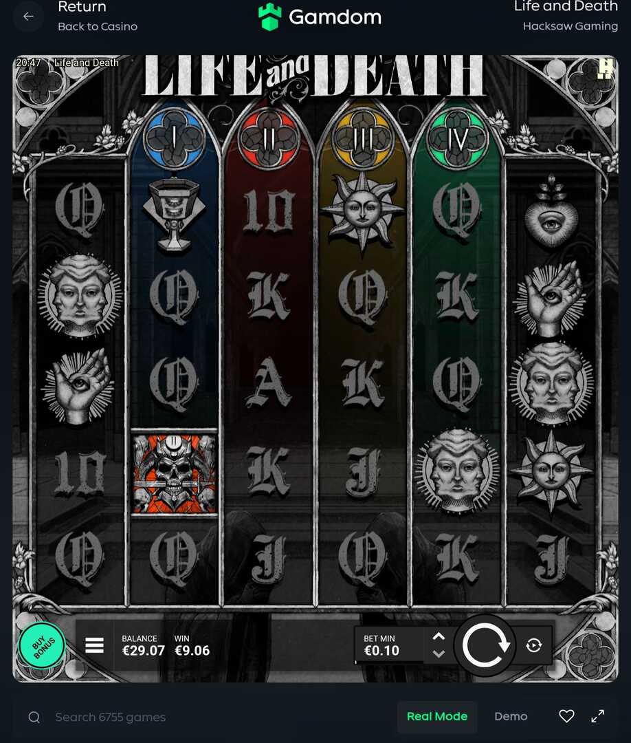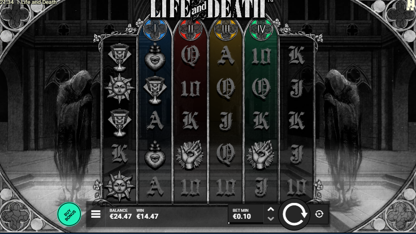 Feedback: Life and death is a cool game. The Four Horsemen-themed Wild Multipliers and Expanding Wild Reels can lead to nice wins, even in the base game. I do think, because of its high volatility, that the frequency of the bonus round hitting without the xbet feature turned on, is a bit low (so I would recommend the impatient player to turn xbet on).
