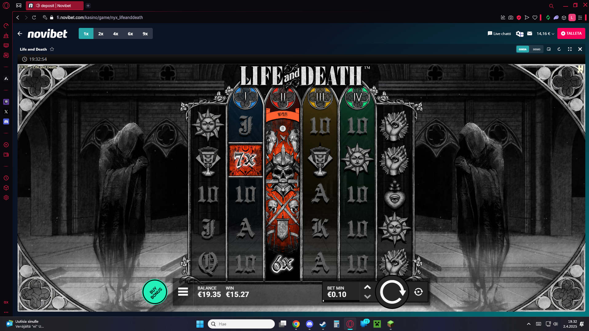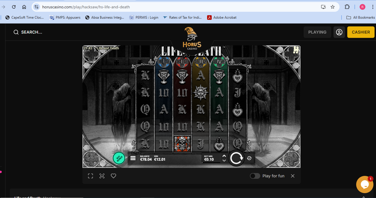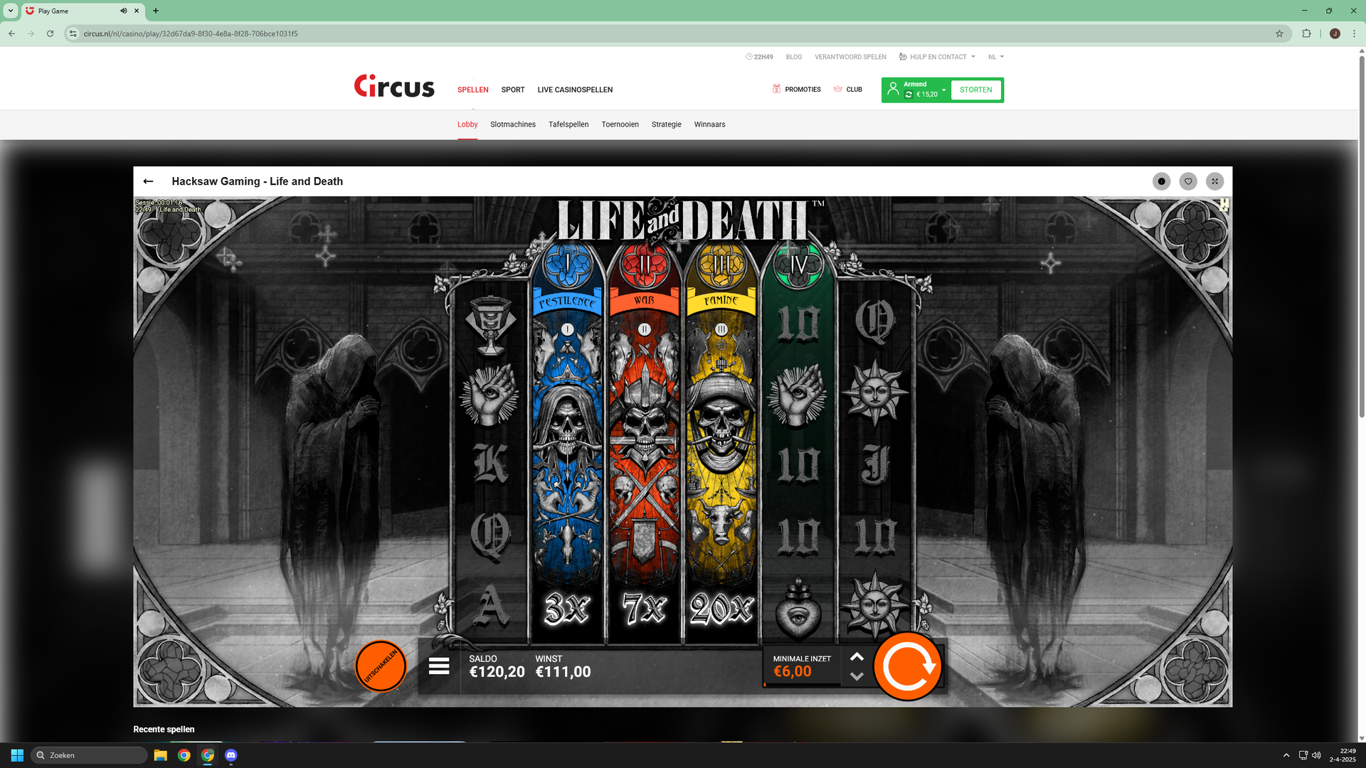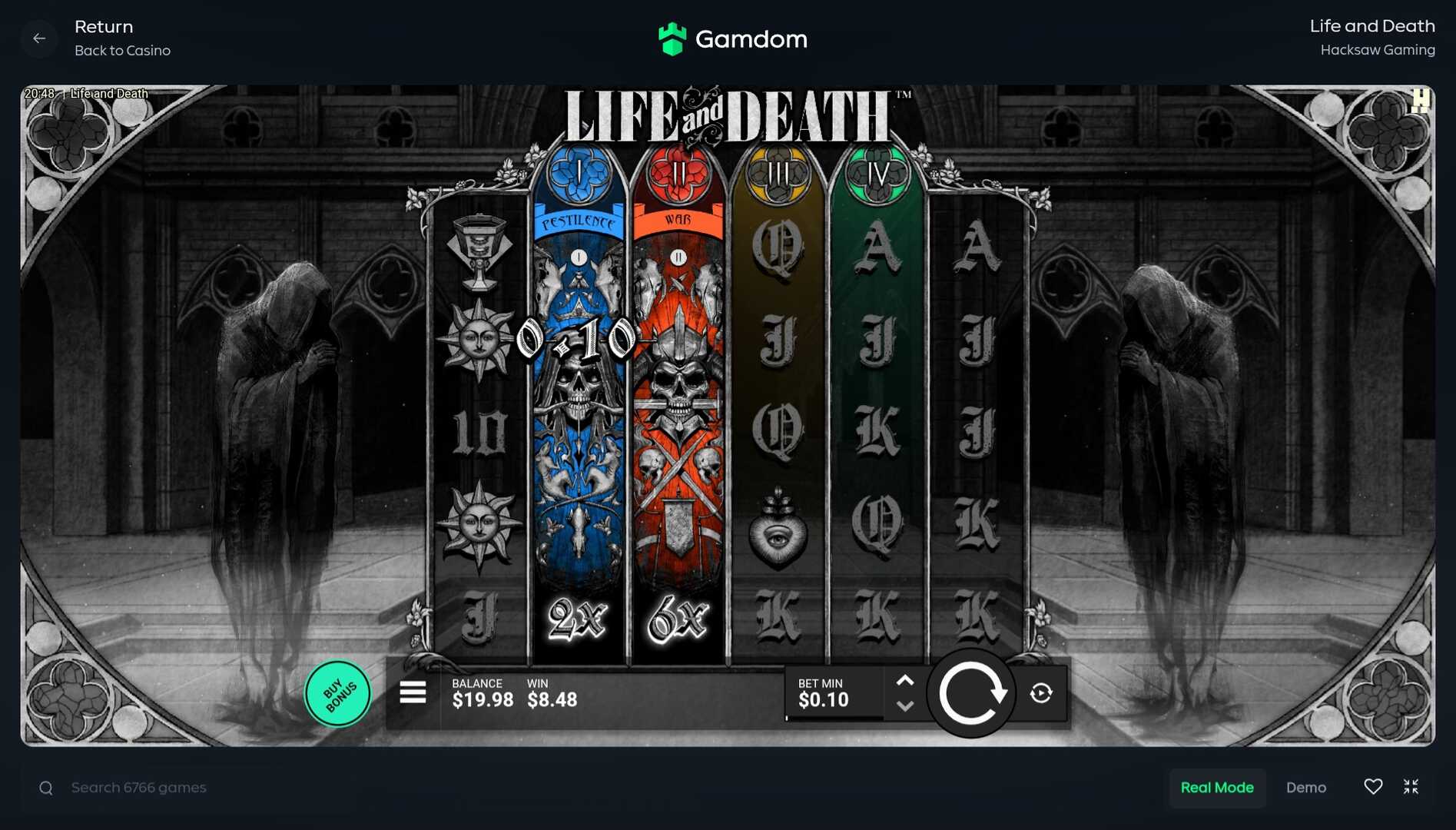 Feedback: Life and death is a cool game. The Four Horsemen-themed Wild Multipliers and Expanding Wild Reels can lead to nice wins, even in the base game. I do think, because of its high volatility, that the frequency of the bonus round hitting without the xbet feature turned on, is a bit low (so I would recommend the impatient player to turn xbet on).