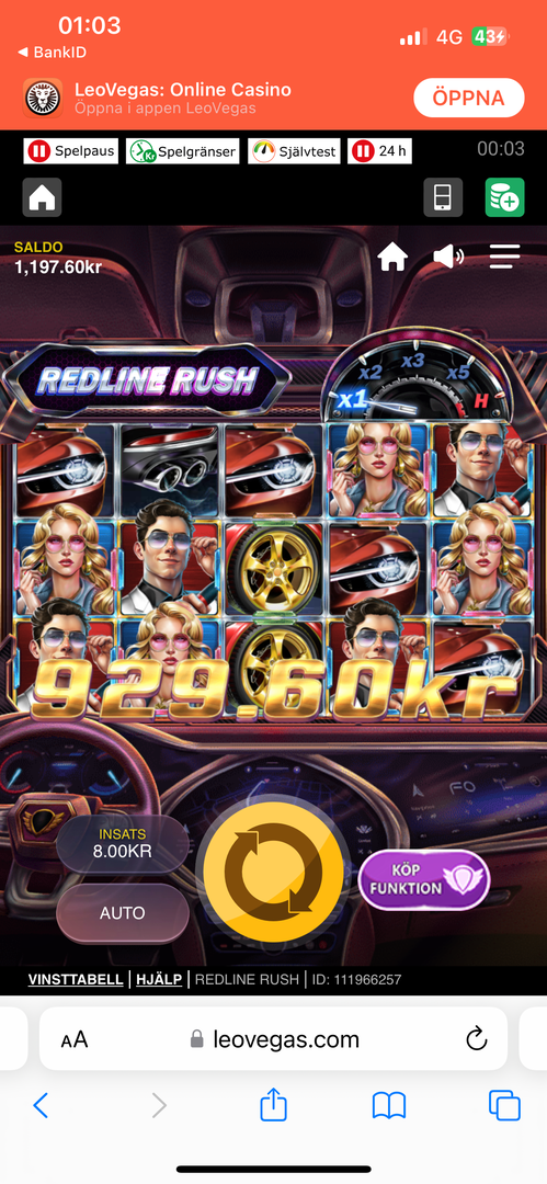 - Feedback: I would love to see how a max win is triggered in this game. The speedometer concept is ok but when the paylines pay so little(even at 5x) it's not that fun of a sweat. 94.67% RTP(Leovegas) is pretty damn bad imo for any consideration of high volume play.