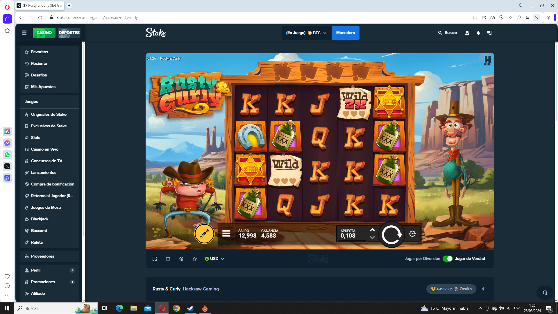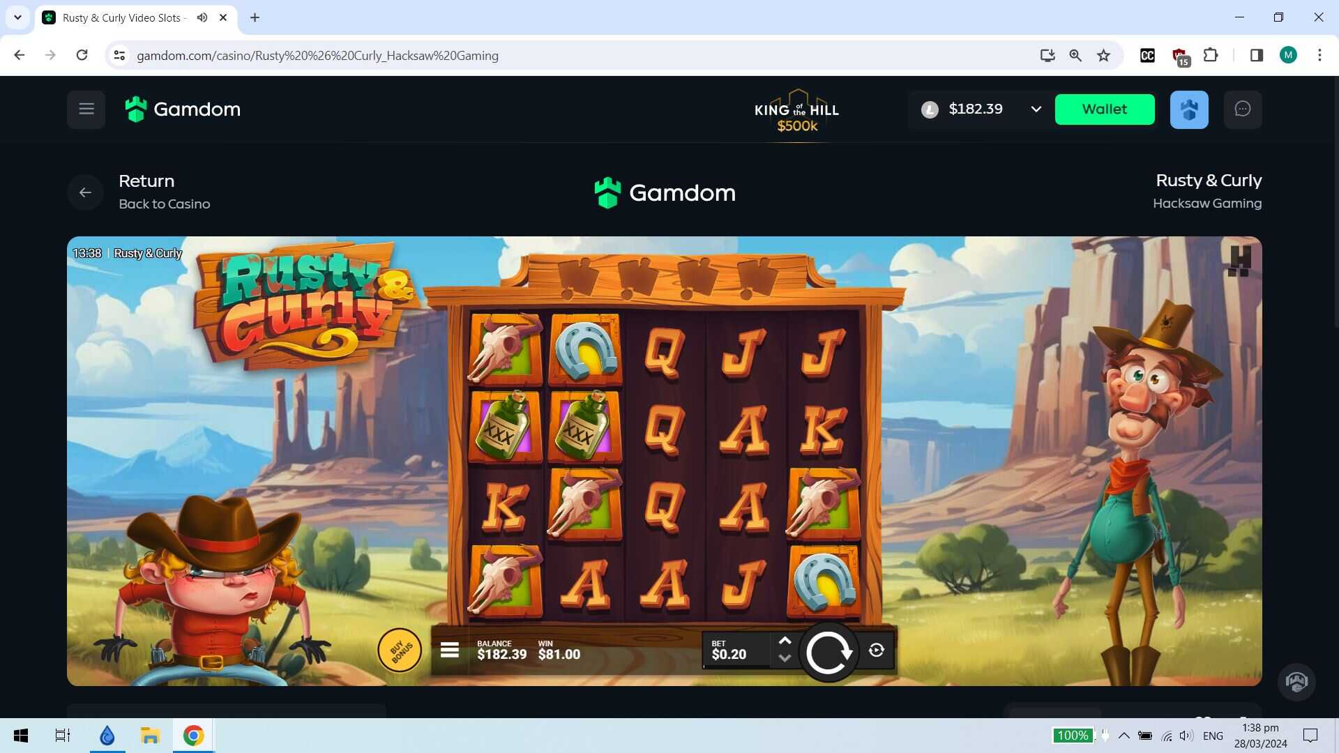 - Feedback: Im the first, nobody want be the first 🙂 The slots have potential, i mean is the first slot in 2024 from Hacksaw Gaming where basegame spins is more funny because the wild can be sticky, the freespins enter more easy than others slots from hacksaw. I tried befor the super bonus here on bigwinboard and is a very good idea the 3 cicles with 3 freespins every cicle. I think finally this rusty & curly could be one of top3 Hacksaw gaming 2024 slots